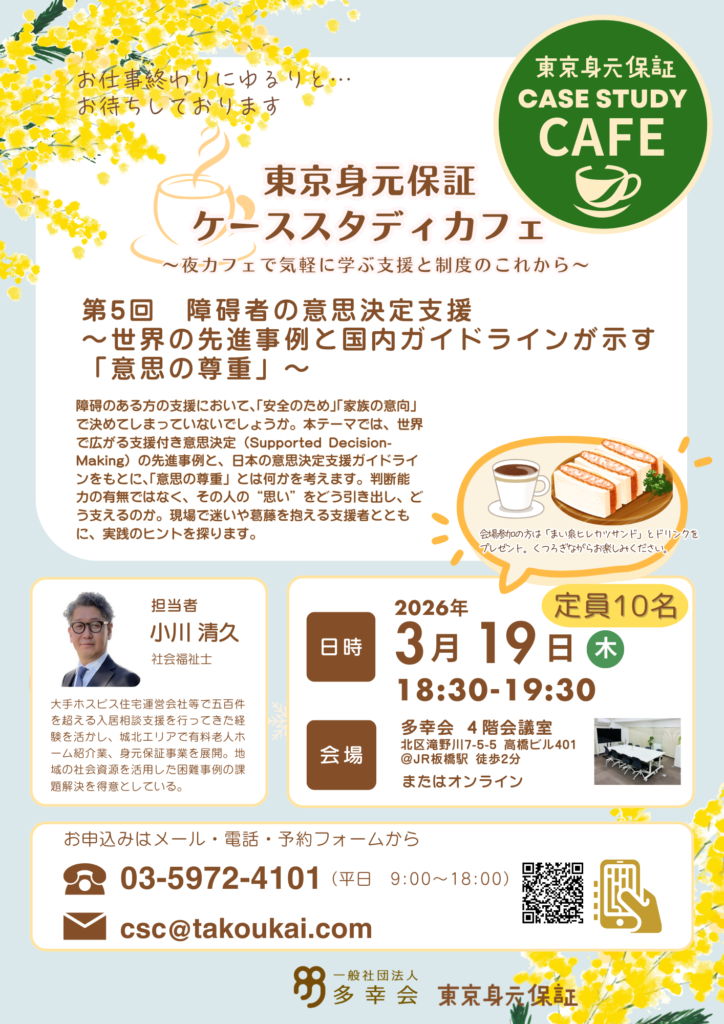 【3月19日開催】障碍者の意思決定支援を考える|夜カフェで気軽に学ぶ勉強会@板橋